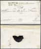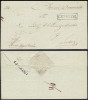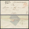1836 koperta listu z Warszawy do Paryża, okrągły stempel Warszawa o średnicy 18 mm typ B (zbliżone litery SZ), pobrano opłatę 2,08 srebrnych groszy (adnotacja), stempel tranzytowy z Aachen "PP", stempel punktu wymiany poczty "PRUSSE PAR GIVET", stemple odbiorczy na odwrocie plus stempel "AED" (Affranchi Etranger Destination - opłacony z zagranicy do adresata), zaplamienie jak na ilustracji. | |