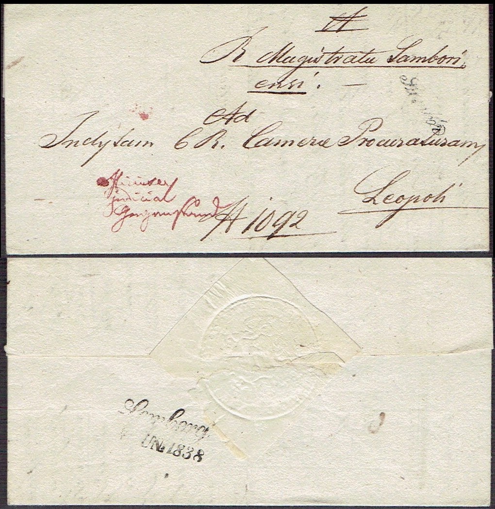 1838 Sambor, kompletny list składany wysłany z Sambora do Lwowa. | |