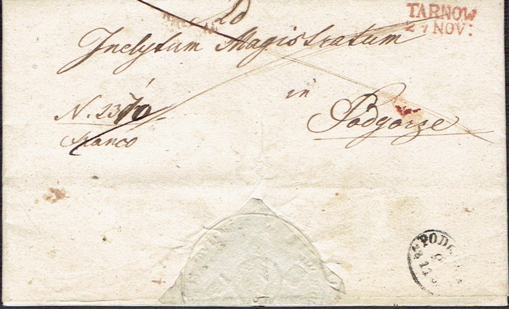 1835 Tarnów, kompletny list składany wysłany z Tarnowa do Pilzna. | |