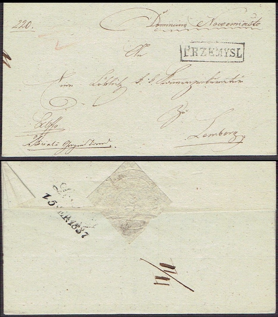 1837 Przemyśl, kompletny list składany wysłany z Przemyśla do Lwowa. | |