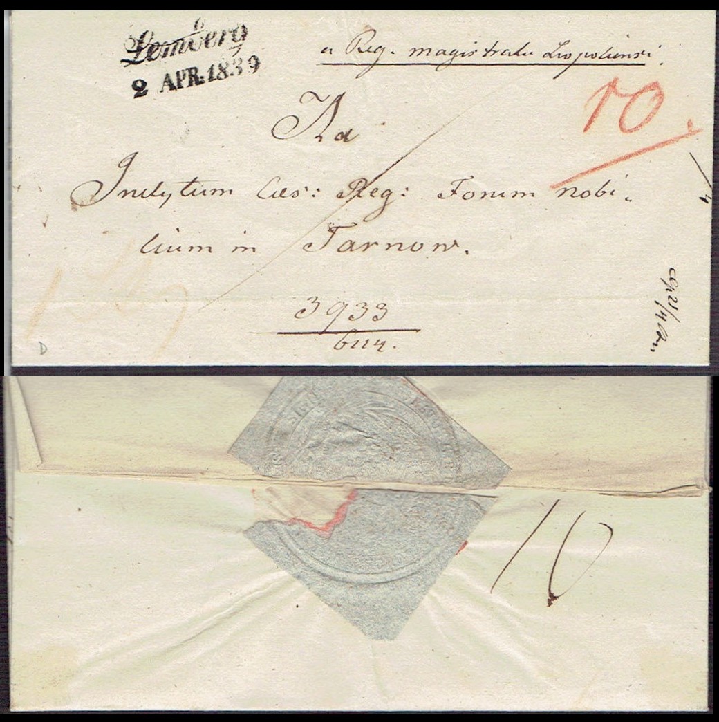 1839 Lemberg (Lwów), kompletny list składany wysłany ze Lwowa do Tarnowa. | |