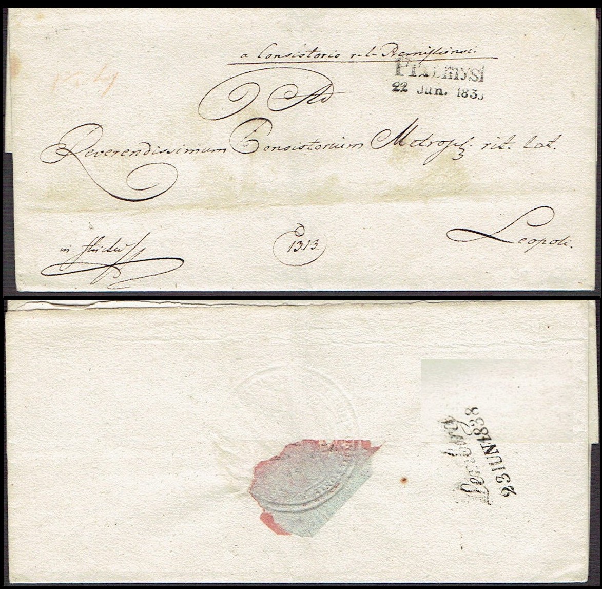 1838 Przemyśl, obwoluta listu wysłanego z Przemyśla do Lwowa. | |