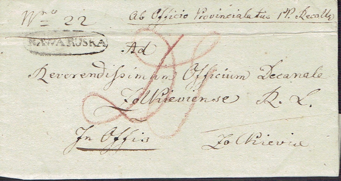 1836 RAWA RUSKA - kompletny z pełną treścią list urzędowy (datowany 9 maja) wysłany z Rawy Ruskiej do Przemyśla, czarny obwódkowy owalny stempel nadawczy RAWA RUSKA; dokładnie określono drogę pocztową "per Rawa, per Żółkiew, per Lemberg"; papier ze znakiem wodnym - MACEROF i krzyżem maltańskim; na odwrocie pieczęć lakowa nadawcy; bardzo dobry stan zachowania. | |
