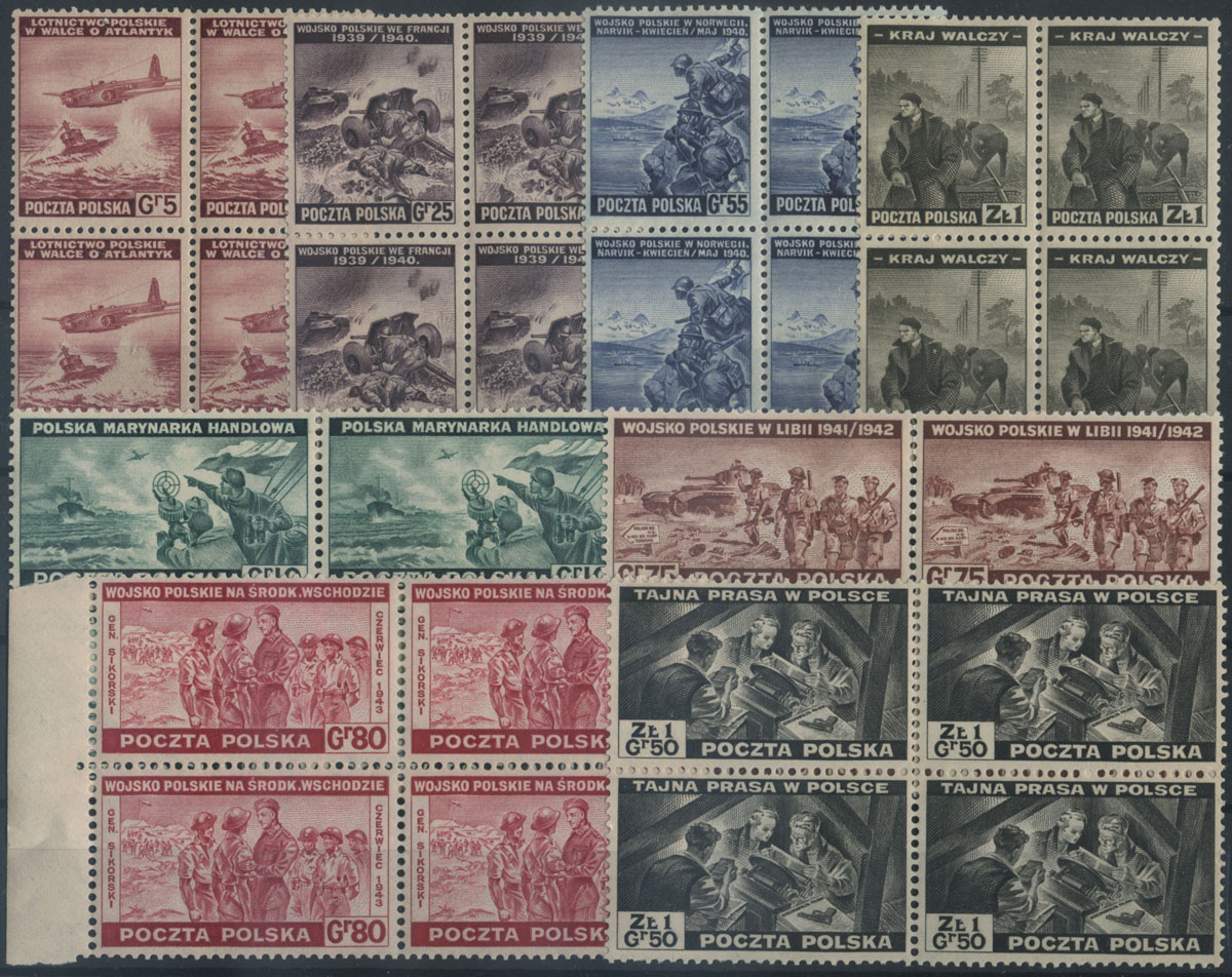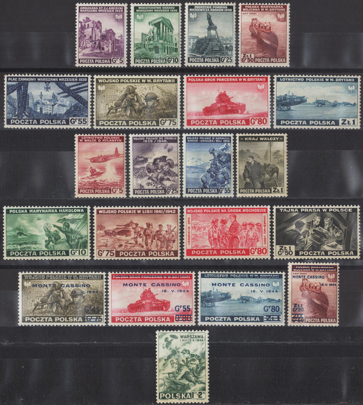 1941 I wydanie Polskiego Rządu na Emigracji w Londynie, zniszczenia dokonane przez Niemców w Polsce i Wojsko Polskie w Wielkiej Brytanii, świetne graficznie staloryty, seria czysta w pięknym stanie zachowania.