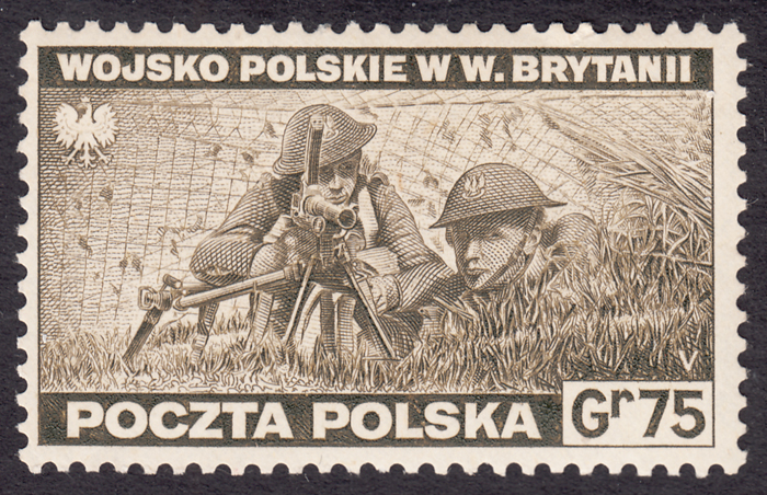 1943 II wydanie Polskiego Rządu na Emigracji w Londynie, Polskie Siły Zbrojne w walce z Niemcami, seria w czworoblokach.