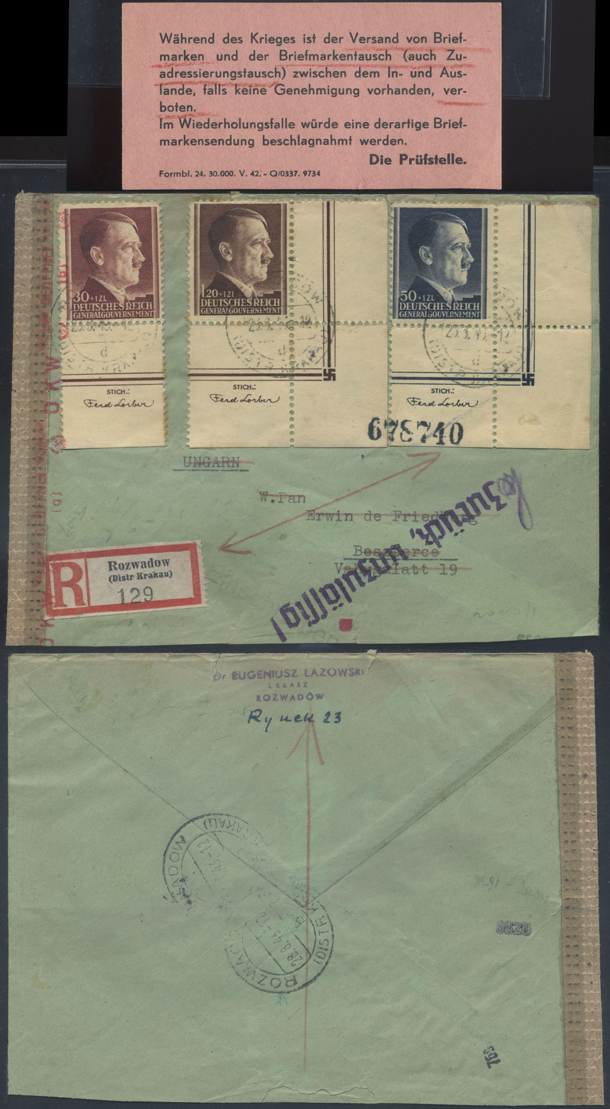 1943 list polecony z Rozwadowa na Węgry, list zwrócony do nadającego z drukiem informującym o zakazie wysyłania i wymiany znaczków pocztowych z zagranicą. | Fi.89-91 |