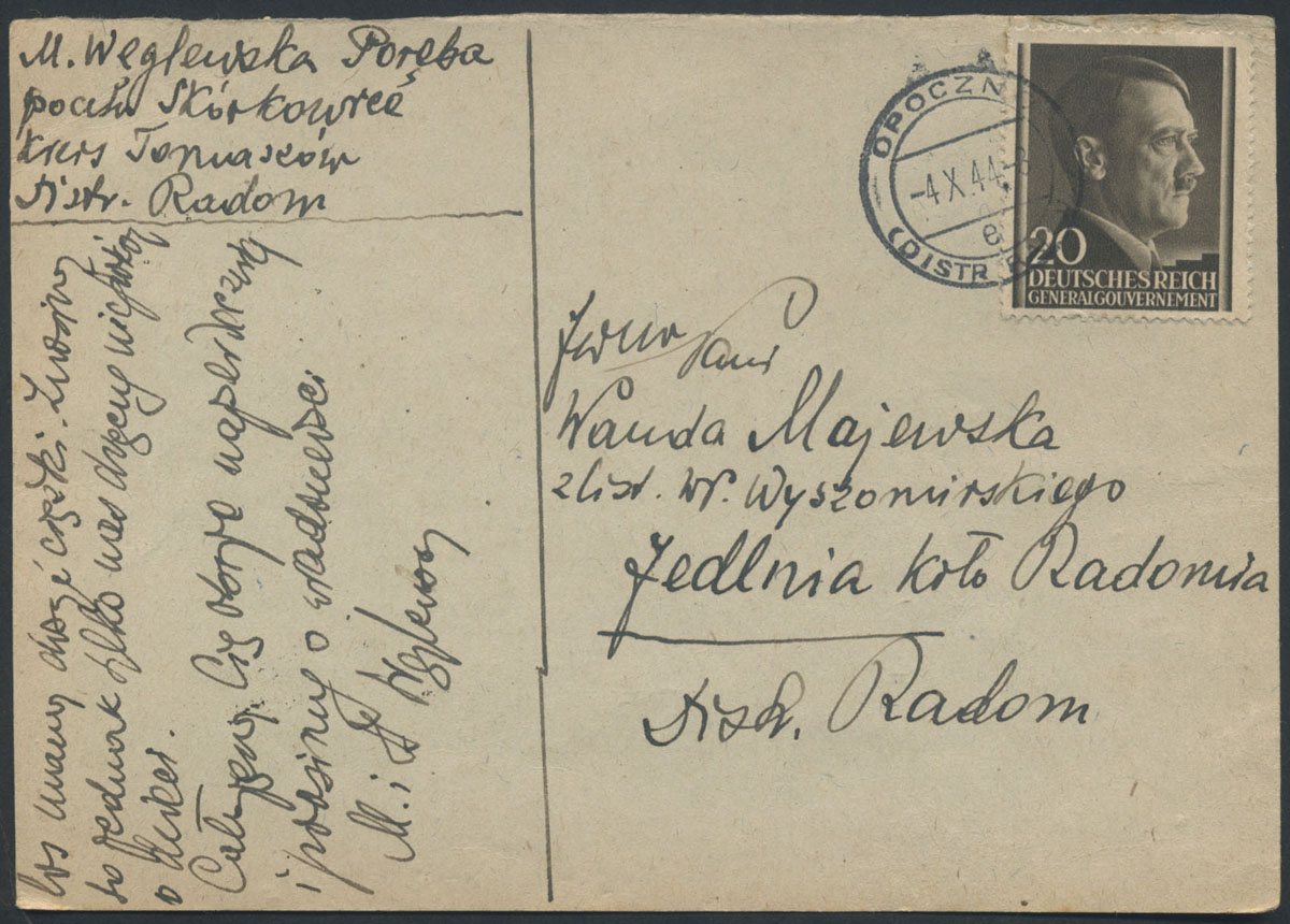 1944 kartka z Opoczna do Jedlnia. | Fi.77 |