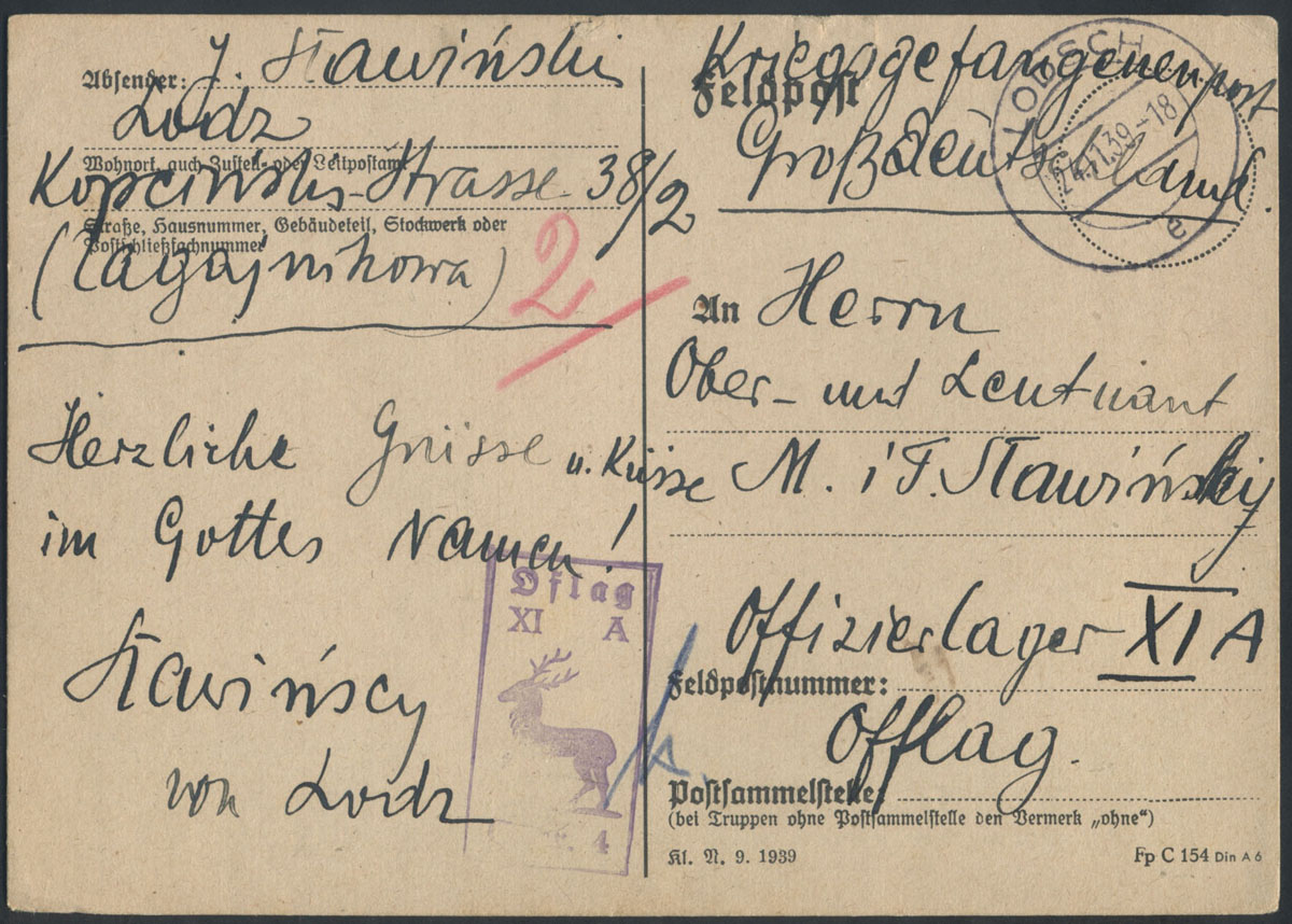 1939 kartka od rodziny z Łodzi do dwóch więźniów Oflagu XIA, stempelek cenzury obozowej. | |