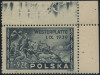 1945 6. rocznica walk o Westerplatte, znaczek makulaturowy bez perforacji poziomej z silnym abklaczem, gwarancja Walocha. | Fi.374MK Mi.407 |