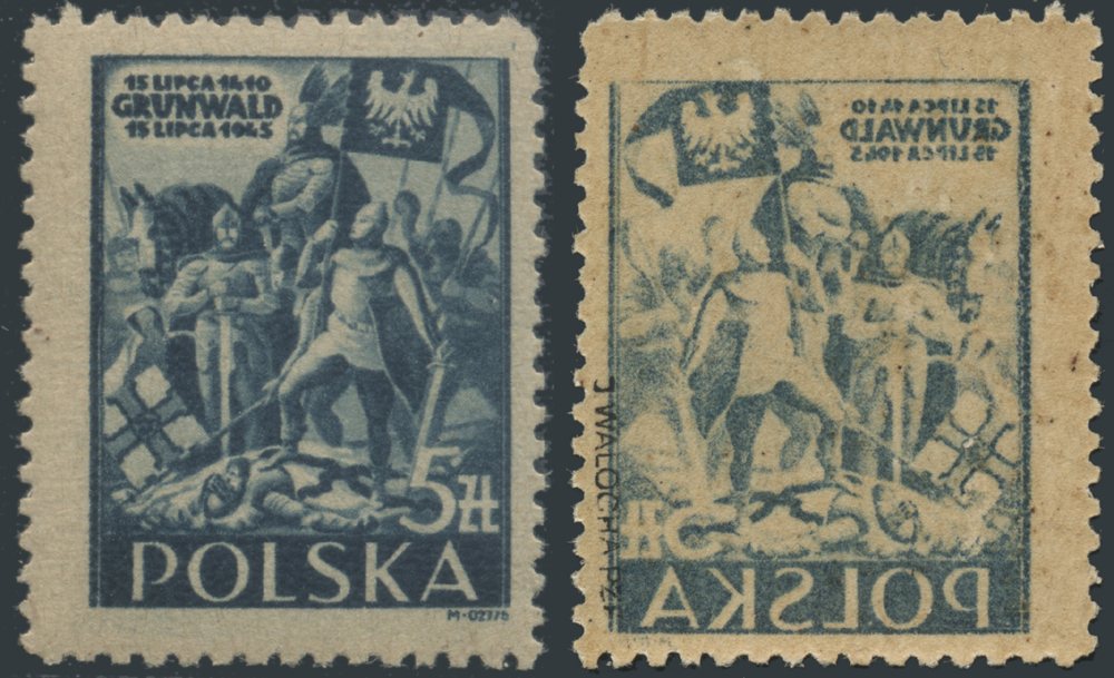 1945 535. rocznica bitwy pod Grunwaldem, znaczek z silnym abklaczem, gwarancja Walocha. | Fi.372 Mi.405 |