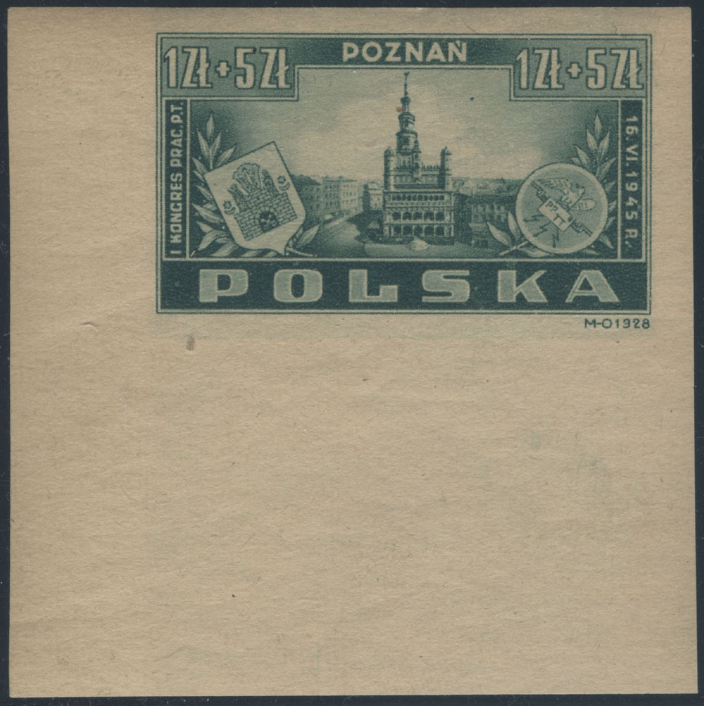 1945I Kongres Pracowników PiT w Poznaniu, znaczek cięty z nadużytej matrycy. | Fi.371nzFFi Mi.403UFalse |