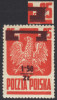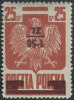 1945wydanie przedrukowe, znaczek z przesuniętym w pionie nadrukiem wychodzącym na sąsiedni znaczek, gwarancja Petriuk. | Fi.376aMK Mi.409b |