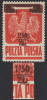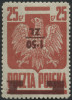 1945 wydanie przedrukowe, znaczek w barwie czerwonej, nadruk typ 1, gwarancja Gryżewski, Łaszkiewicz. | Fi.376b Mi.409a |