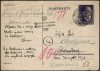 1945 kartka z Gorzkowic do Łodzi, poniemiecki formularz, w Łodzi pobrano opłatę w podwójnej wysokości ze względu na nieopłacenie kartki przez nadawcę (adnotacja czerwoną kredką), stempel cenzury wojskowej nr 1101. | |