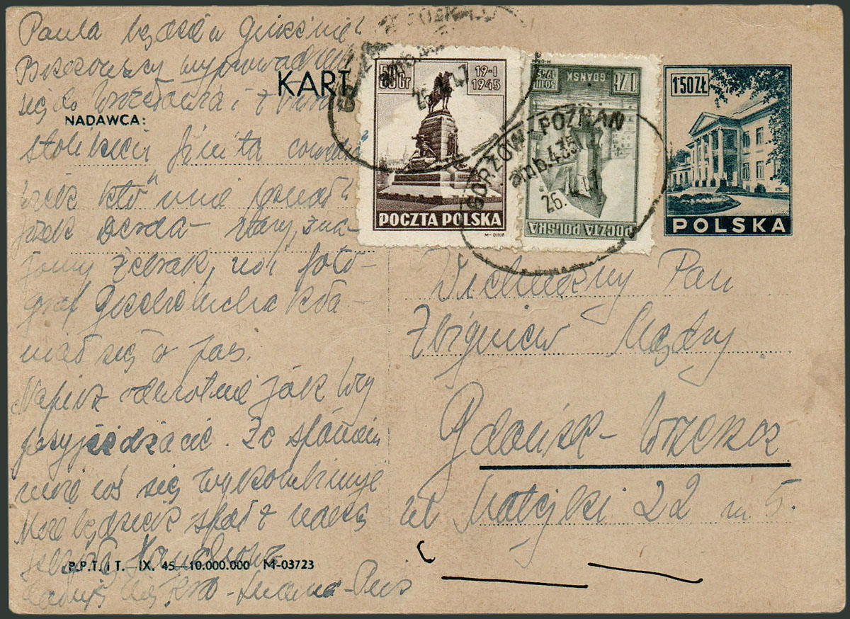 1947 kartka do gdańska nadana w ambulansie kolejowym na trasie Gorzów – Poznań nr 435. | Fi.362, 377, Cp95 |