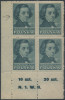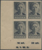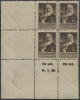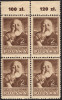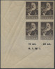 1947 kultura polska, czworoblok z błędem na górnym lewym znaczku "plamka z prawej strony głowy", gwarancja i opis Więcław. | Fi.421B Mi.456A |