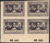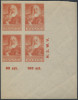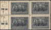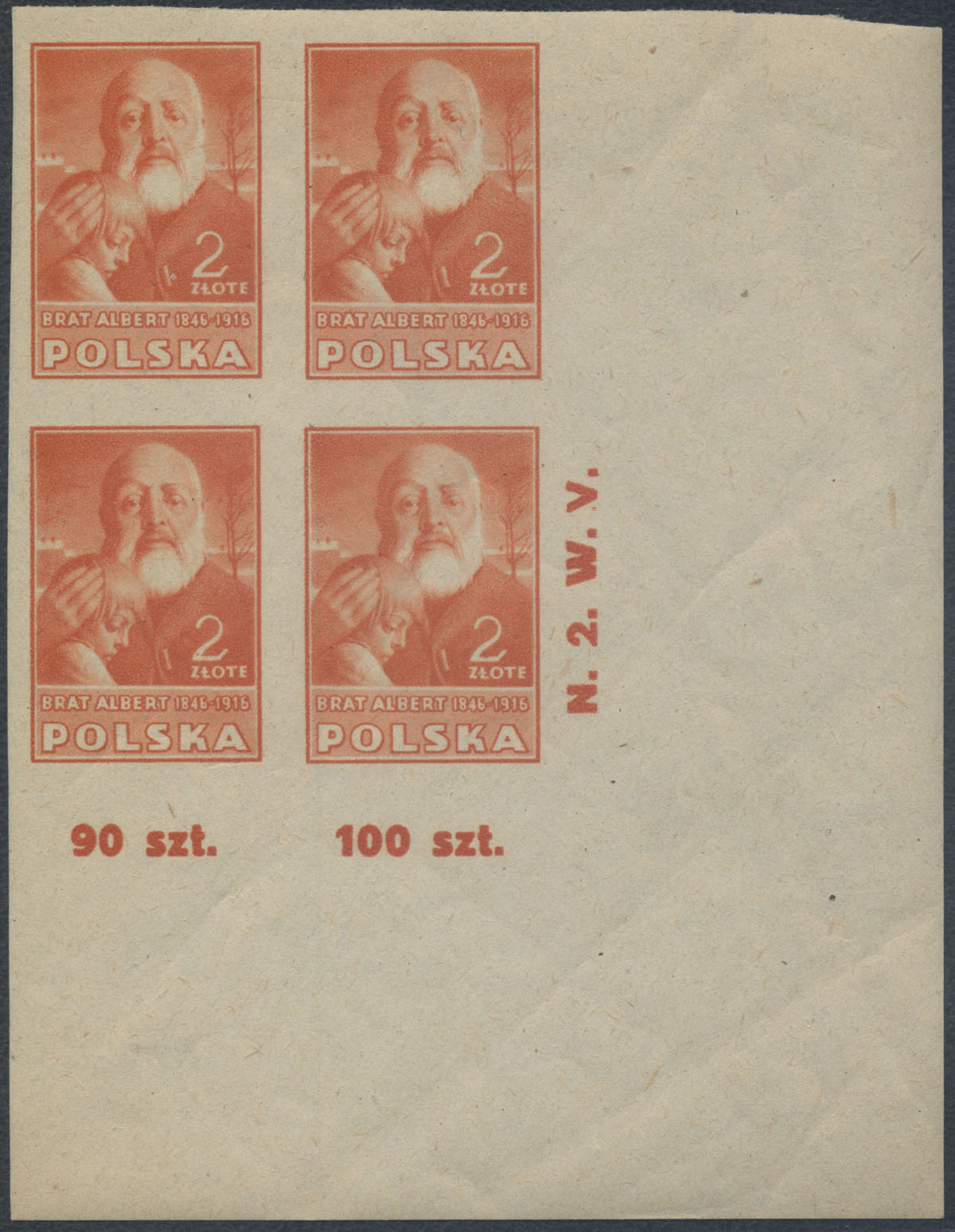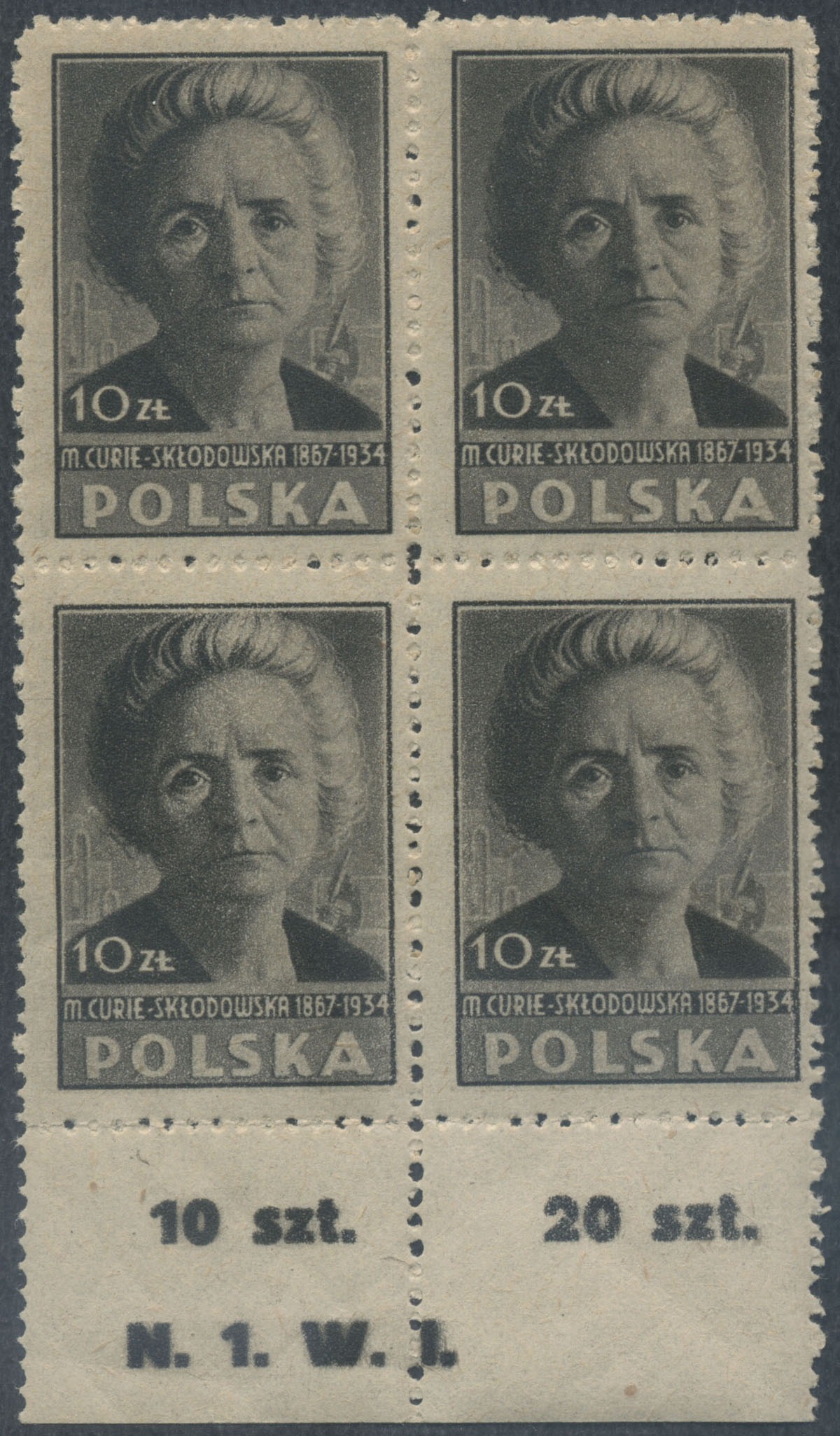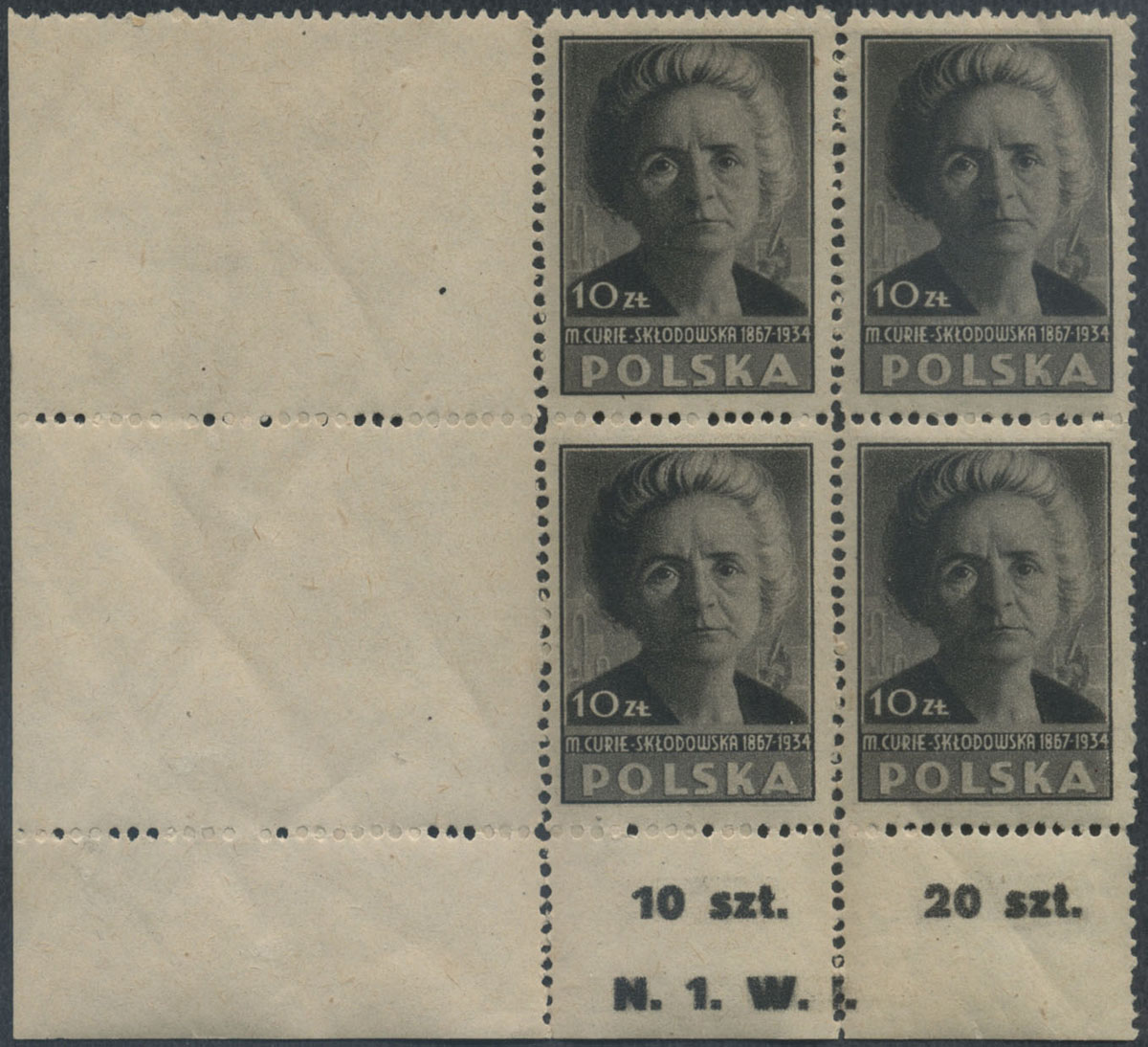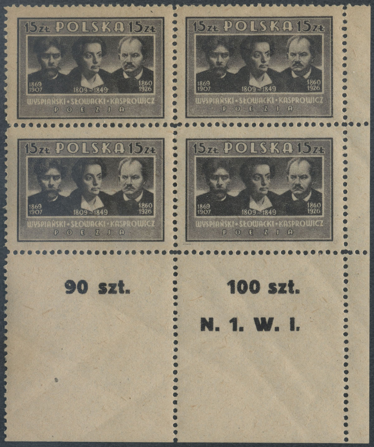 1947 kultura polska, czworoblok z błędem na dolnym prawym znaczku "plamka na W w SŁOWACKI", gwarancja i opis Więcław. | Fi.426A Mi.461B |