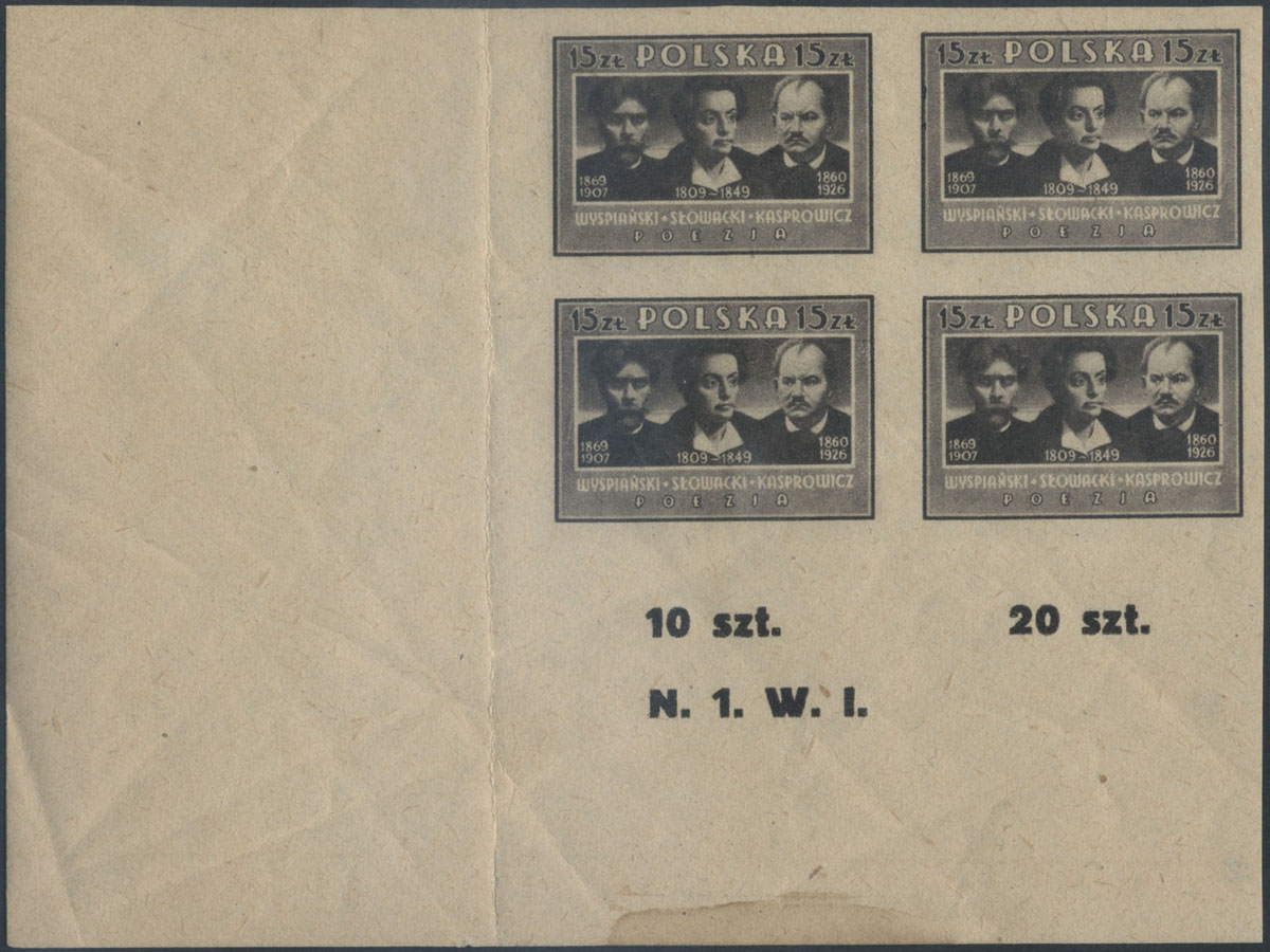 1947 kultura polska, blok legitymacyjny, znaczki w barwie niebieskoszarej na papierze x, gwarancja i opis Walocha. | Fi.429A Mi.463B |