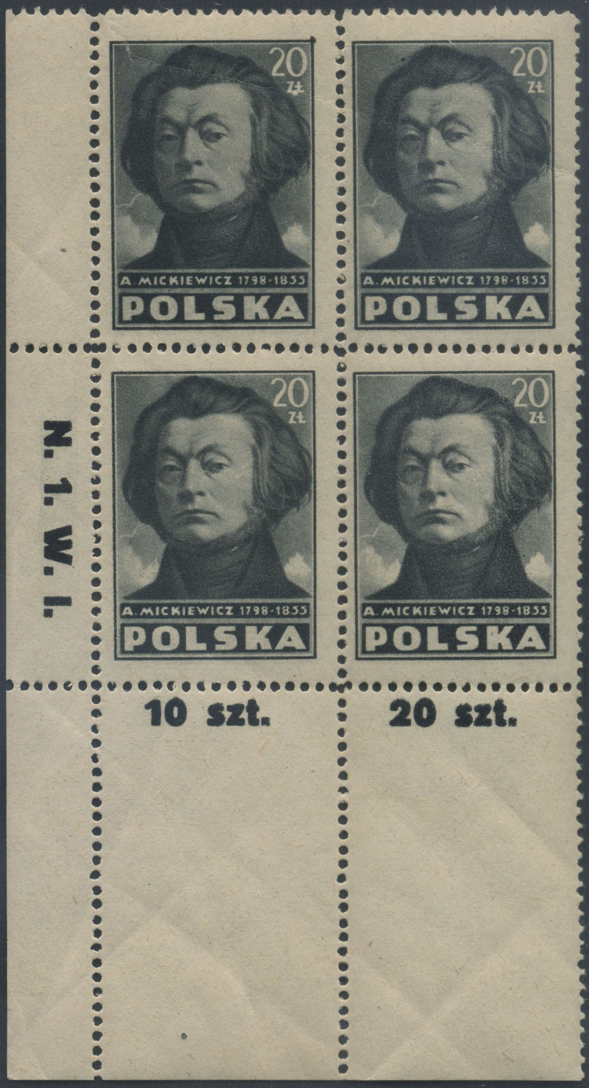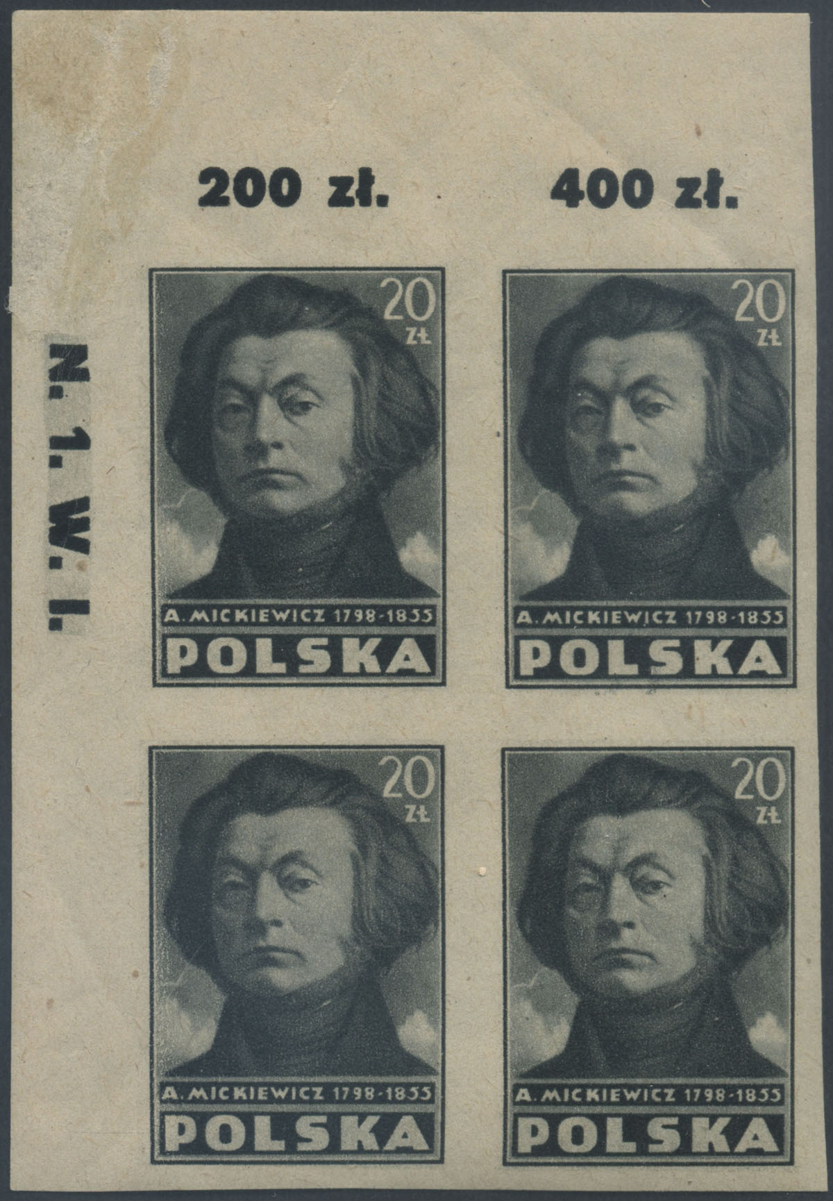 1947 Kultura polska I wydanie, Adam Mickiewicz - znaczek za 20 zł., blok legitymacyjny N.1.W.I. | Fi.427A Mi.462B |