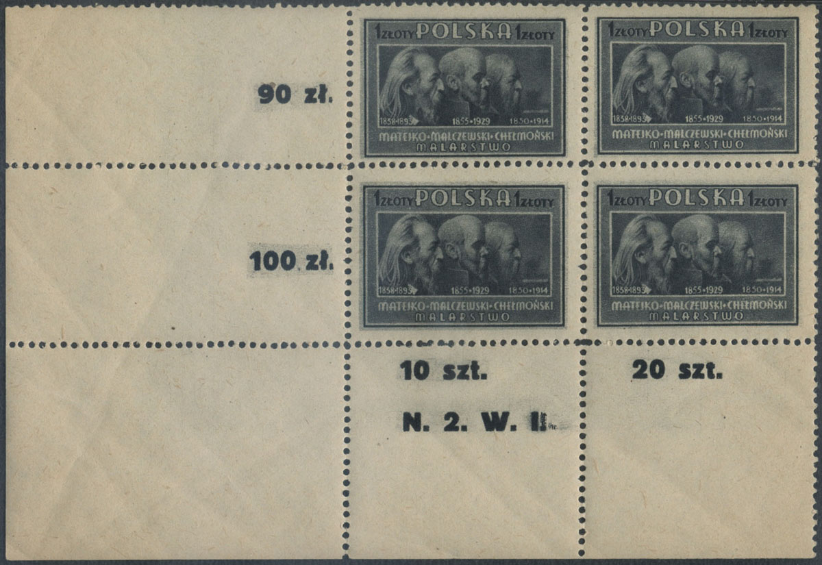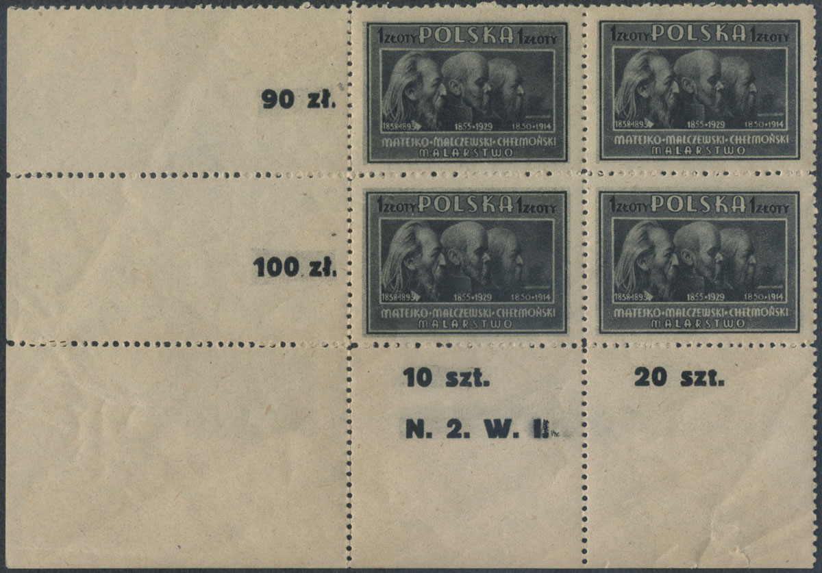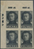 1947 kultura polska, czworoblok z błędami na trzech znaczkach, szczegółowe opisy błędów i gwarancja Więcław. | Fi.429B Mi.463A |