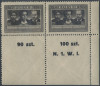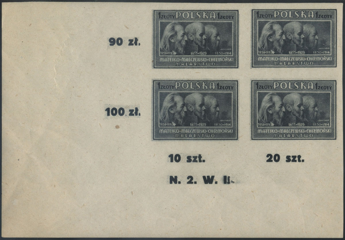 1947 Kultura Polska, narożnikowa parka prób znaczka za 20 zł w kolorze czarnym z charakterystycznym dla tej próby numerem walca N.2.W.I., na odwrocie bez wtórnej odbitki maszynowej, w tej postaci z numerem walca unikalne, gwarancja Schmutz. | Fi.427A P1 Mi.462P |