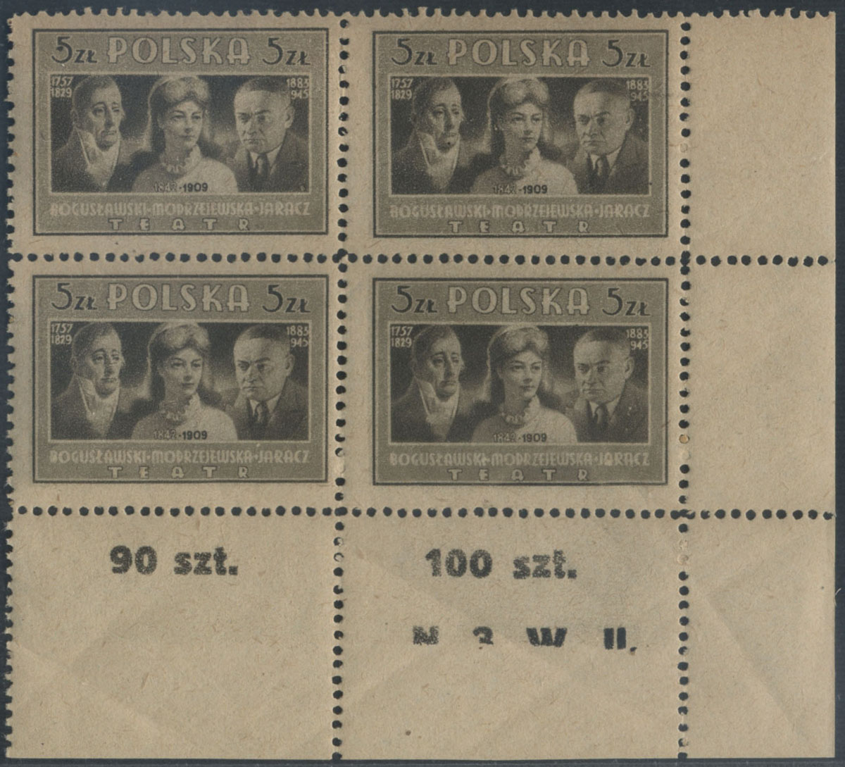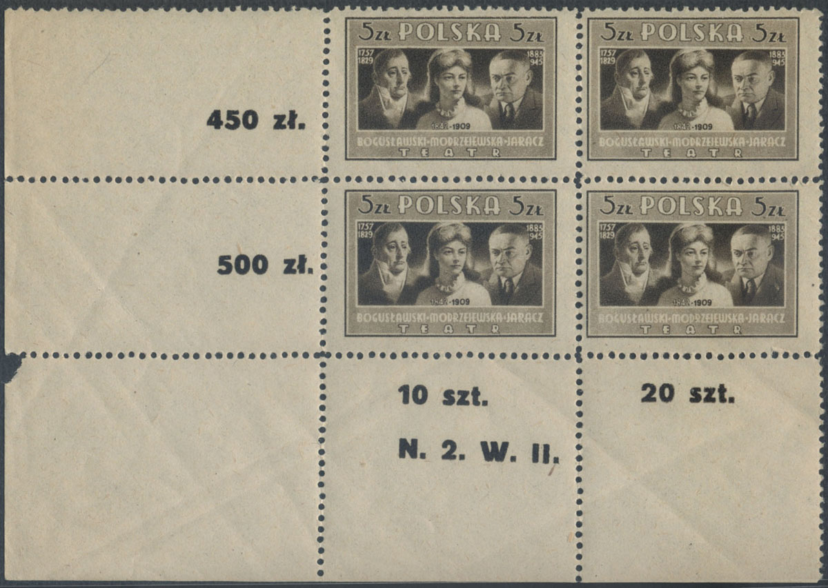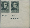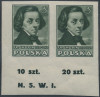 1947 Kultura polska II wydanie - W.Bogusławski, H.Modrzejewska, S.Jaracz, parka znaczków za 5 zł. z częściowym brakiem rysunku znaczka - druk na podwiniętym papierze, sygnowany, gwarancja i opis MK Schmutz. | Fi.432A MK Mi.466B |