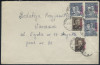 1950 groszy, list z Wodzisławia Śląskiego do Warszawy opłacony znaczkami z nadrukiem groszy typ 3 w barwie czerwonej, brak jednego znaczka. | Fi.473, 527 |