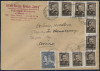 1950 groszy, list polecony z Sochocina do Warszawy opłacony znaczkami z nadrukiem groszy typ 23 w barwie fioletowej. | Fi.464, 470, 503 Mi.598, 621, 644 |