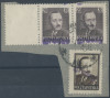 1950 groszy, wycinek list z Katowic 2 opłaconego znaczkami z nadrukiem typ 3 w barwie zielonej i fioletowej. | Fi.474, 475, 519 Mi.625, 626, 650 |