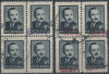 1950 groszy, czworobloki z nadrukami groszy typ 23a+b w barwie fioletowej i czerwonej, gwarancja i oznaczenie Weźranowski. | Fi.473 |