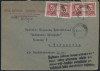1950 "groszy" znaczki z fioletowym stempelkiem typu 22, jednym z czterech najrzadszych typów dyrekcyjnych, unikalny czworoblok z nadrukami w różnych typach (1x21 + 3x22) na liście wysłanym z Połczyna Zdroju 9.11 - czwartego dnia obowiązkowego stosowania nadruków "groszy"; całość w bardzo dobrym stanie zachowania (Mi.120 euro - znaczek z nadrukiem typu 22 na liście); gwarancja Krawczyk. | Fi.503 Mi.644 |