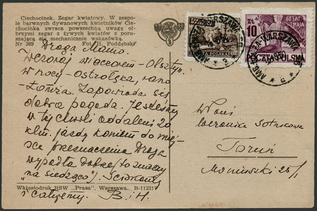 1950 widokówka do Torunia nadana w ambulansie kolejowym na trasie Łomża – Warszawa nr 26. | Fi.513, 514 |