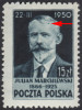 1950 Julian Marchlewski, marginesowy znaczek za 15 zł., unikalny jako użyta pocztowo makulatura bez perforacji poziomej na górze, gwarancja. | Fi.512 MK1 Mi.440 |