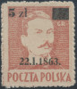 1945 82. rocznica Powstania Styczniowego, znaczek w barwie brązoworóżowej z minimalnym abklaczem na odwrocie, gwarancja i opis Walocha. | Fi.347aMK6 Mi.389 |