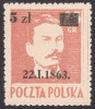 1945 82. rocznica Powstania Styczniowego, znaczek w barwie brązoworóżowej, gwarancja i opis Walocha. | Fi.347a Mi.389 |