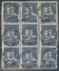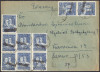 1950 "groszy" znaczki z nadrukiem typu 10, jednym z czterech najrzadszych typów dyrekcyjnych, frankatura wielokrotna - 9 znaczków na liście wysłanym 2.1.51 z Jarocina do Warszawy; całość w bardzo dobrym stanie zachowania (Mi.120 euro - znaczek z nadrukiem typu 10 na liście). | Fi.527I Mi.665 |