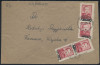 1951 groszy, list z Radości do Niemiec opłacony znaczkiem z nadrukiem groszy typ 3 w barwie fioletowej i typ 5 w barwie czerwonej. | Fi.476, 477 Mi.627, 629 |