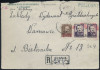 1951 groszy, lotniczy list polecony z Pabianic do Anglii opłacony znaczkami z nadrukiem groszy typ 5 i typ 25 w barwie fioletowej, gwarancja i opis Walocha. | Fi.475, 520 Mi.626, 651 |