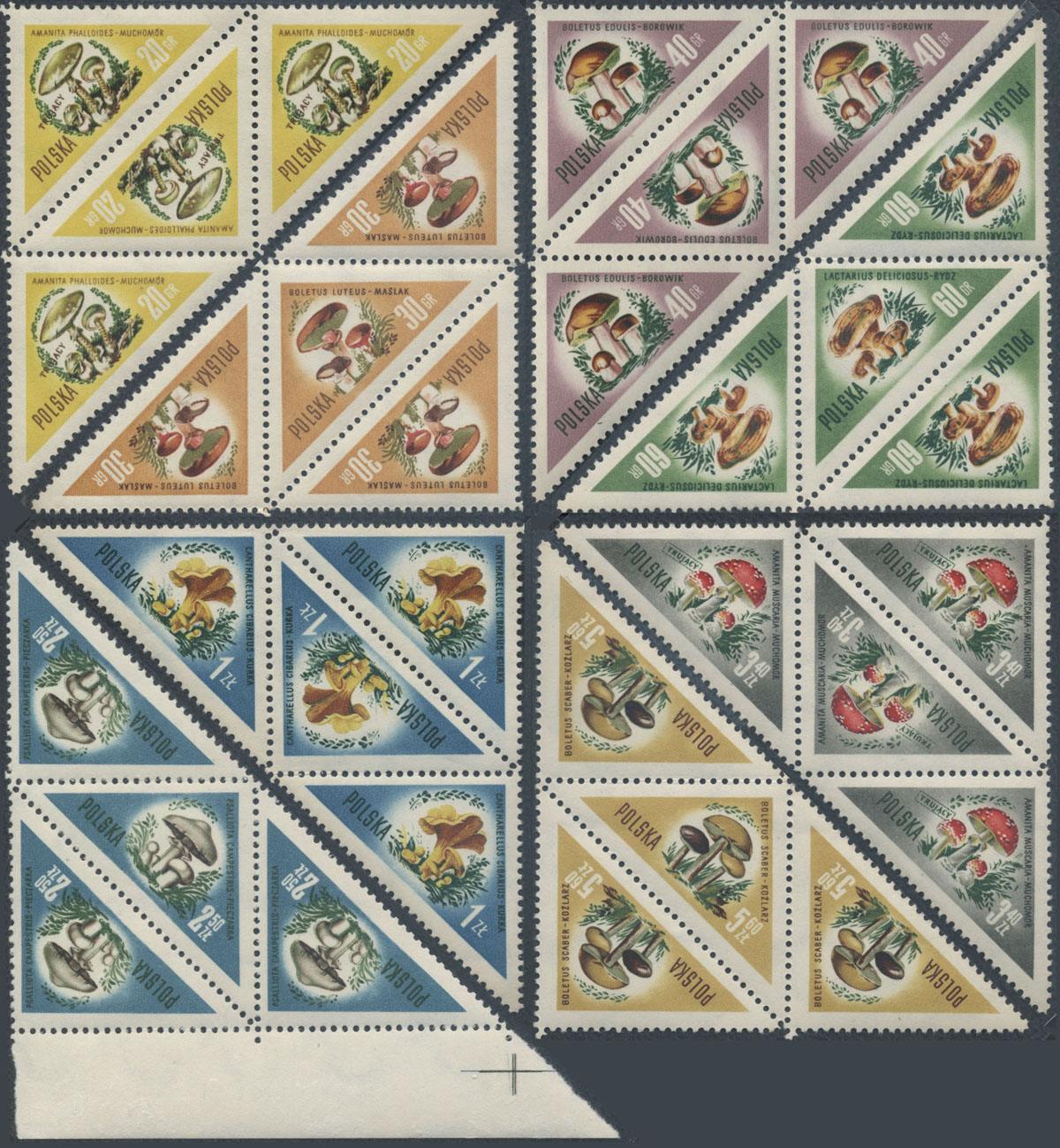 1959 Grzyby polskie, seria w parkach tête-bêche (Fi.200.-). | Fi.948-55 Mi.1093-1100 |