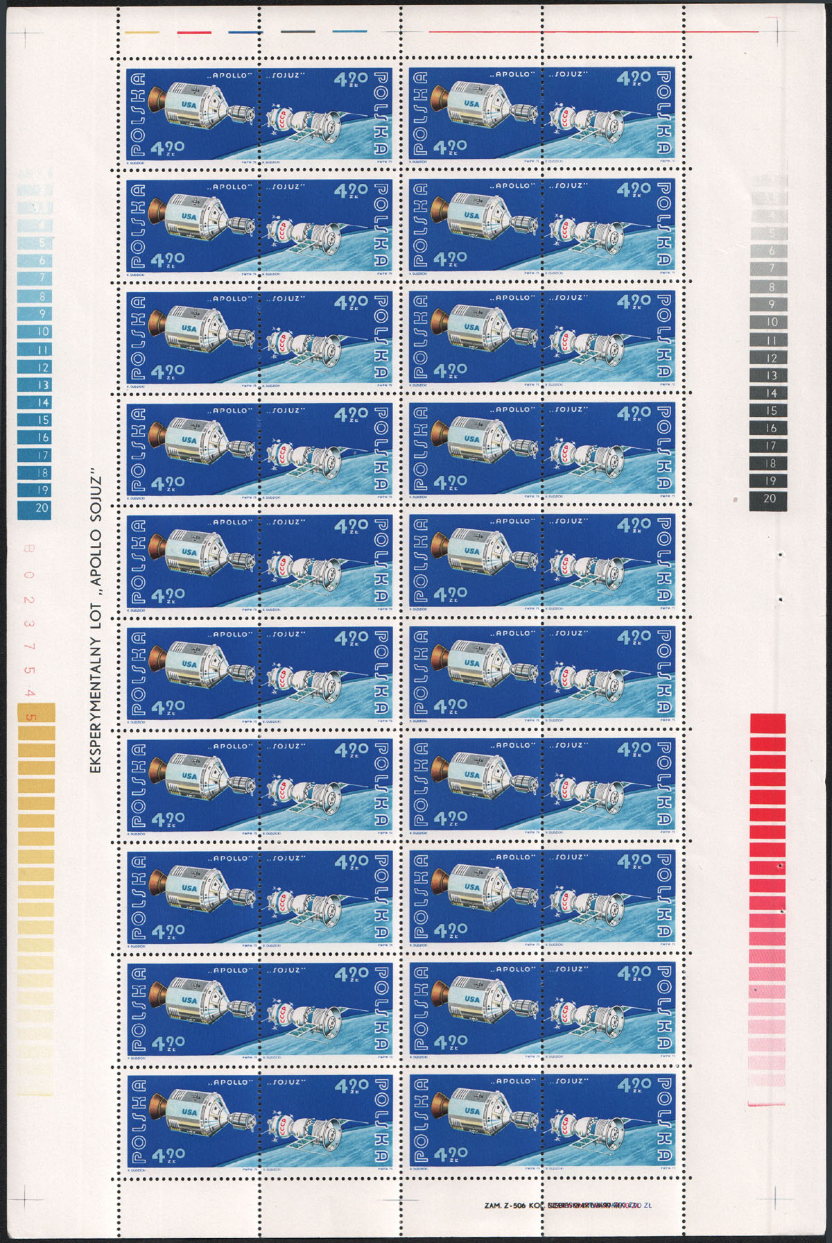 1975 eksperymentalny lot "apollo - Sojuz", arkusz sprzedażny znaczków za 4,90 zł. | Fi.2240-1 ark. |
