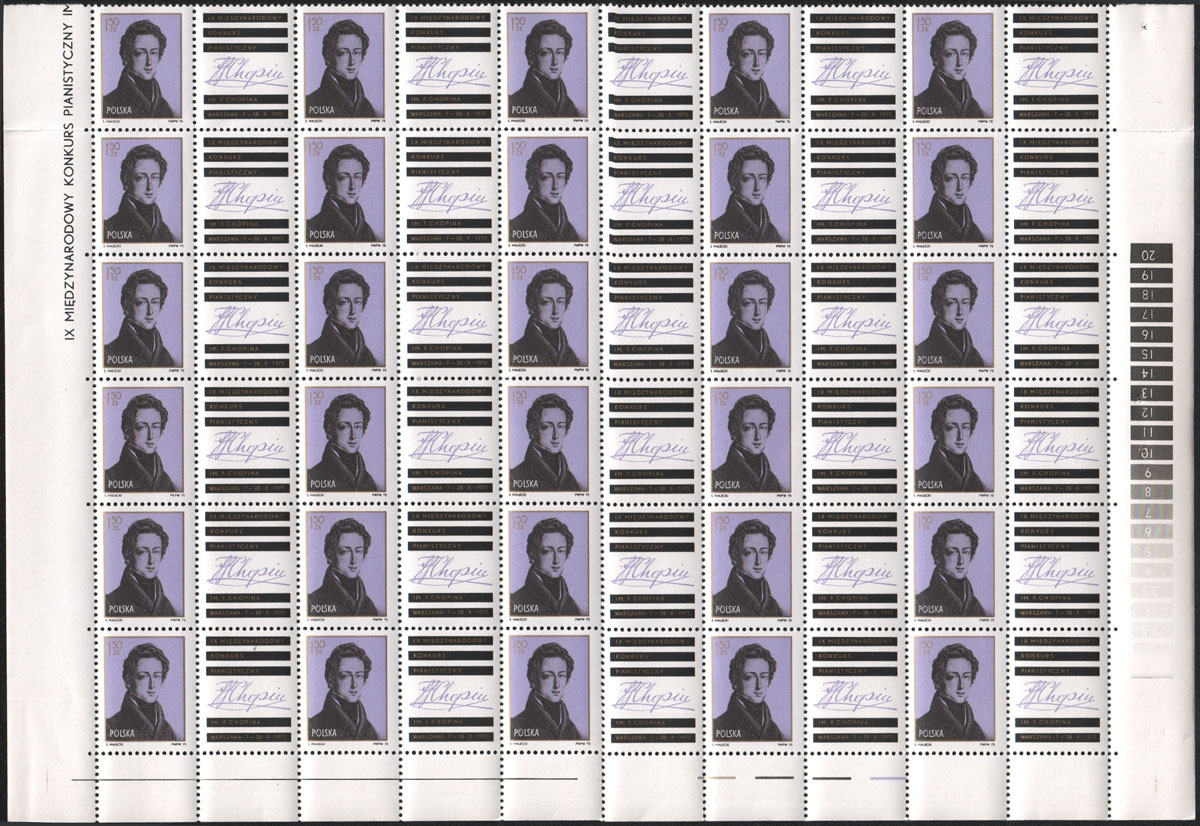 1975 Międzynarodowy Konkurs Pianistyczny im. Fryderyka Chopina, duży fragment arkusza, pozwalający na sporządzenie dowolnych kombinacji. | Fi.2261 Mi.2408 |