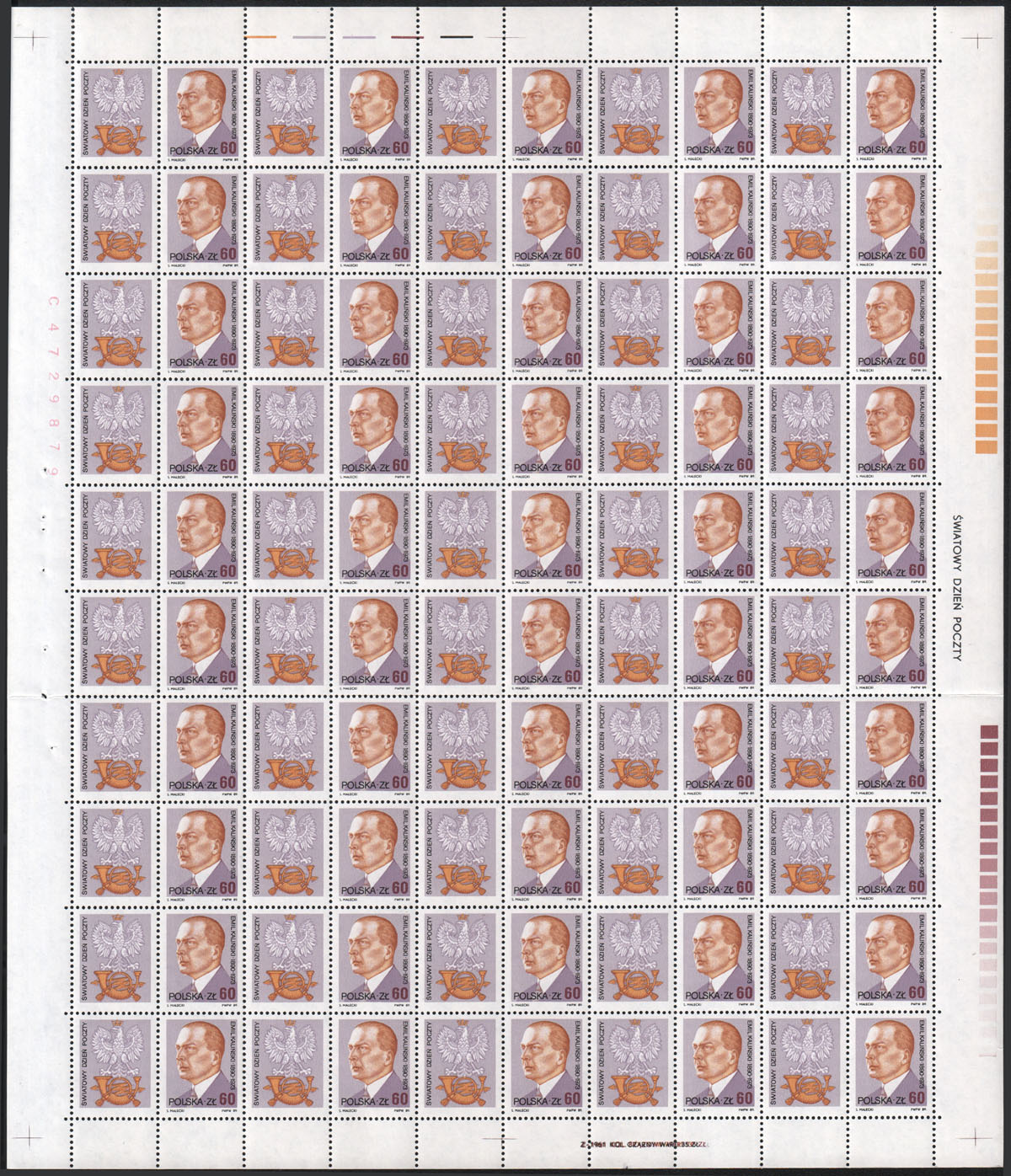 1989 Światowy Dzień Poczty, arkusz sprzedażny złożony w połowie, niewielkie rozdarcie jednej perforacji na dole arkusza. | Fi.3076 ark. Mi.3224 |