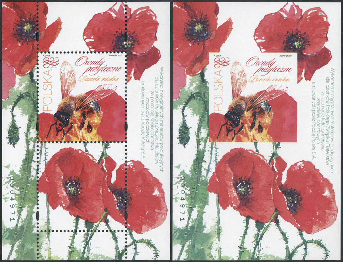2021 owady pożyteczne - pszczoła, nowodruki wykonane z oryginalnych materiałów produkcyjnych dla członków PZF w nakładzie 6.000 sztuk. | Fi.5145ND A, B |