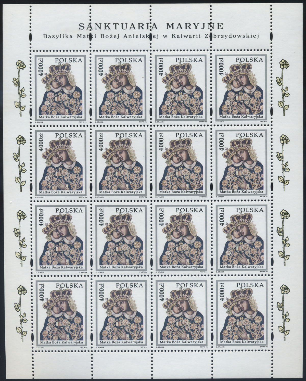 1994 sanktuaria maryjne - Kalwaria Zebrzydowska, arkusz sprzedażny. | Fi.3341 ark. Mi.3489 |