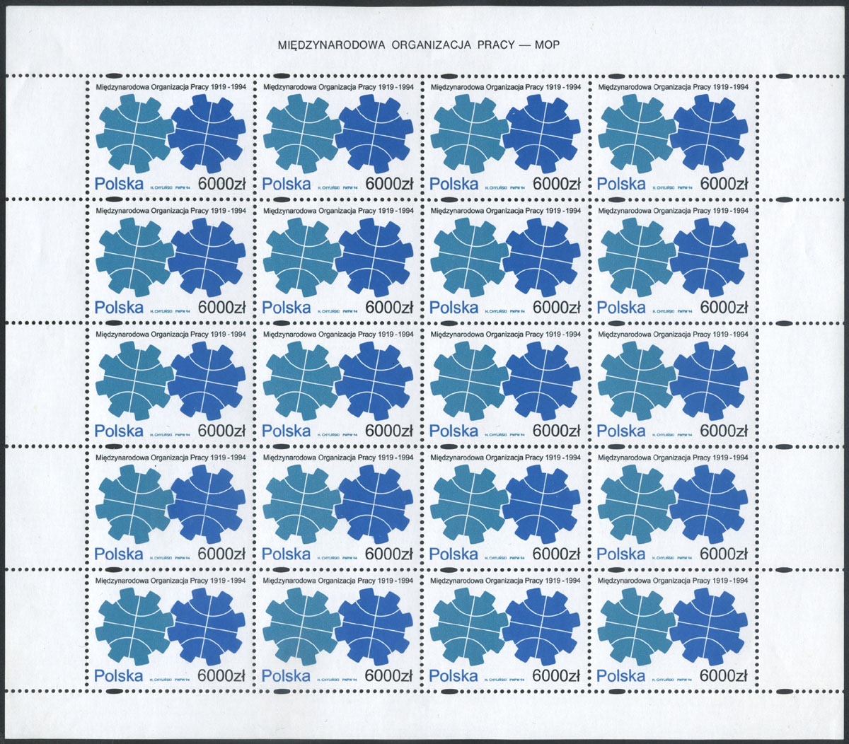 1994 75 lat Międzynarodowej Organizacji Pracy, arkusz sprzedażny. | Fi.3345 ark. |