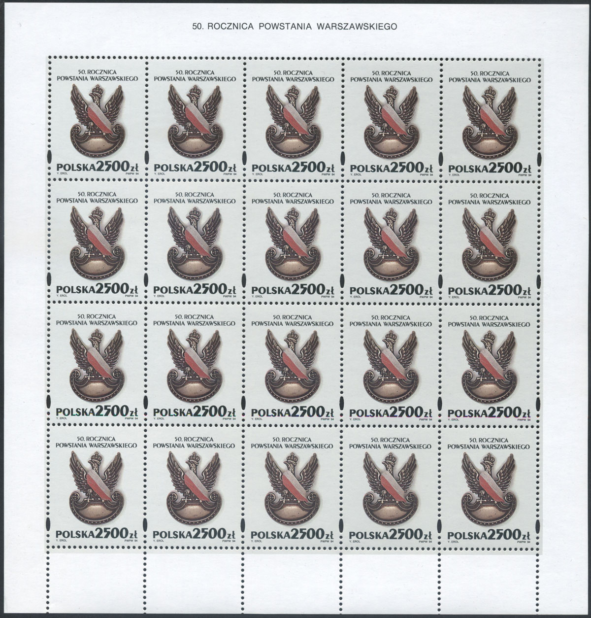 1994 50. rocznica Powstania Warszawskiego, arkusz sprzedażny. | Fi.3352 ark. Mi.3500 |