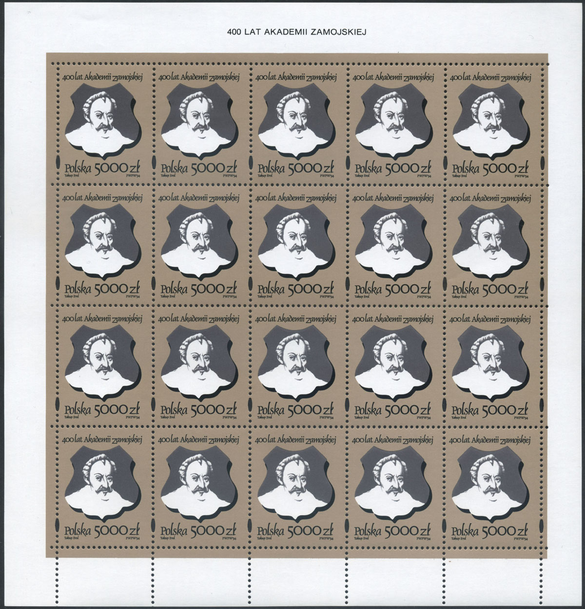 1994 400 lat Akademii Zamojskiej, arkusz sprzedażny. | Fi.3334 ark. |