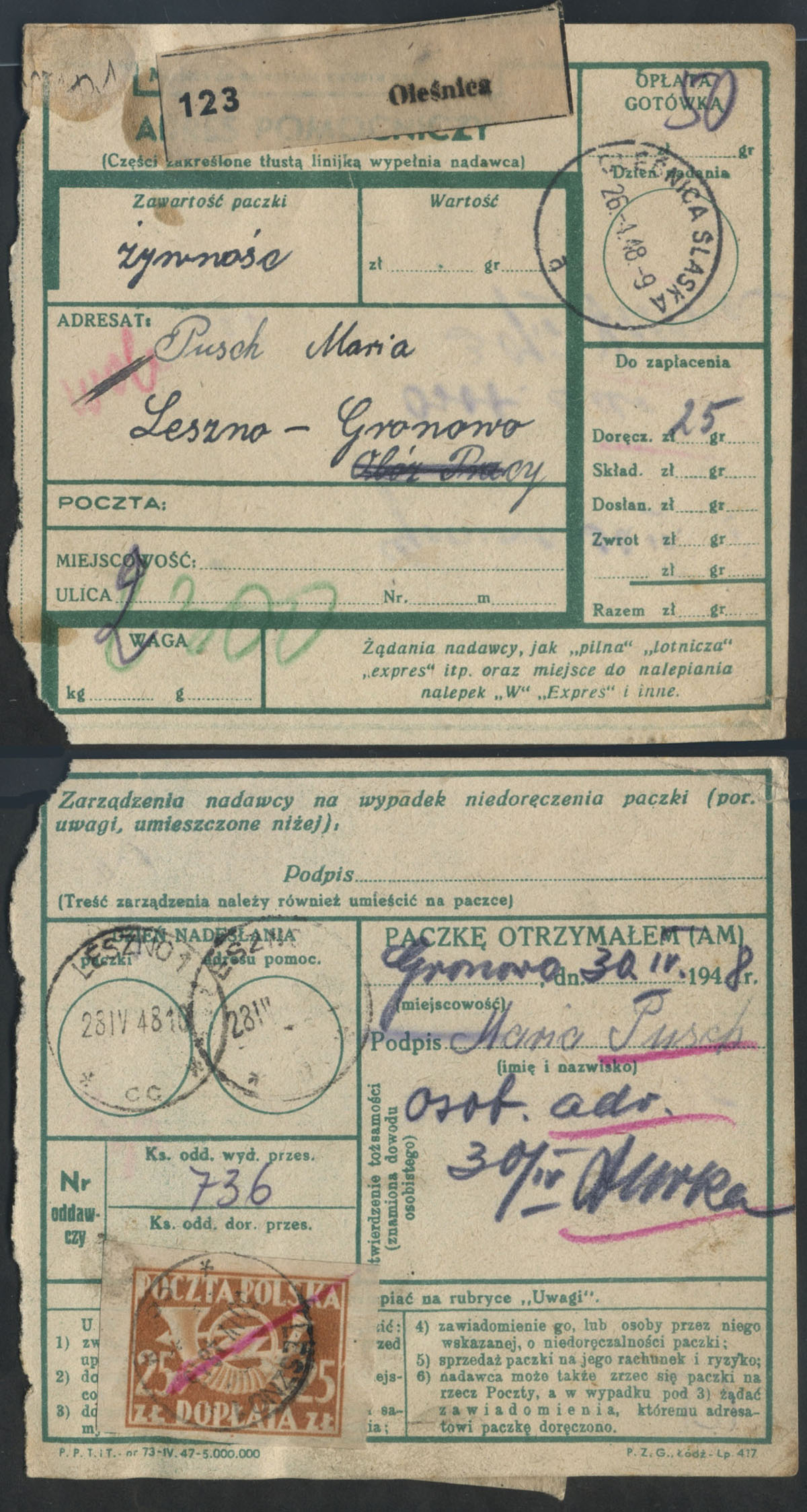 1948 przekaz paczkowy z Oleśnicy do Leszna. | Fi.D110 |