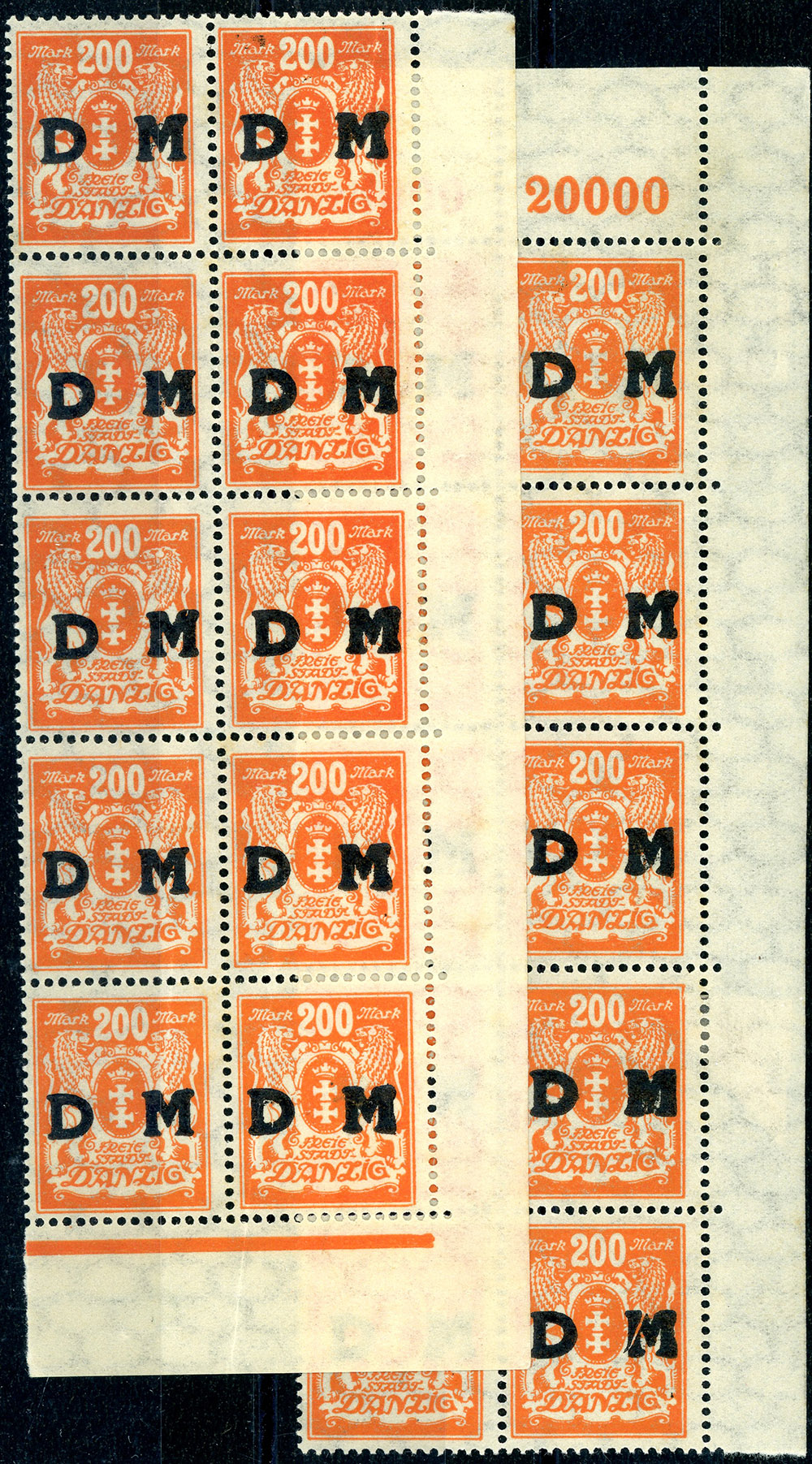 1927 wydanie obiegowe - herb Gdańska w owalu, znaczki w odmianie w i z, gwarancja i oznaczenie Jendroszek. | Fi.210w, z |