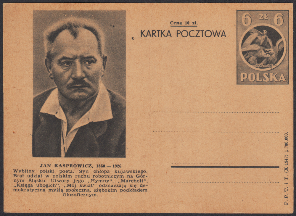 1948 Trzy walczące orły, karta z ilustracją 5 - Jan Kasprowicz, dobry stan zachowania. | Fi.Cp106 |